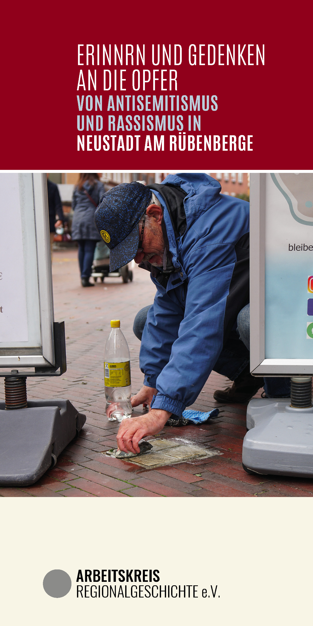 Um auch im öffentlichen Raum das Andenken an die Opfer der NS-Diktatur und des Rassenwahns wach zu halten, setzte sich der Arbeitskreis Regionalgeschichte für das Anbringen einer Gedenktafel am ehemaligen Standort der jüdischen Synagoge in Neustadt ein und konnte dieses Anliegen schließlich mit Unterstützung vieler Menschen realisieren. Der Antrag, Straßen in Neustadt nach ermordeten Jüdinnen, Juden und Sinti zu benennen, den 500 Menschen mit ihrer Unterschrift unterstützten, war im Ortsrat der Stadt Neustadt politisch nicht durchzusetzen. Der Arbeitskreis Regionalgeschichte unterstützt nun die Initiative, ein Mahnmal für die ermordeten und vertriebenen jüdischen Neustädterinnen und Neustädter zu errichten und organisiert das Verlegen von Stolpersteinen.
